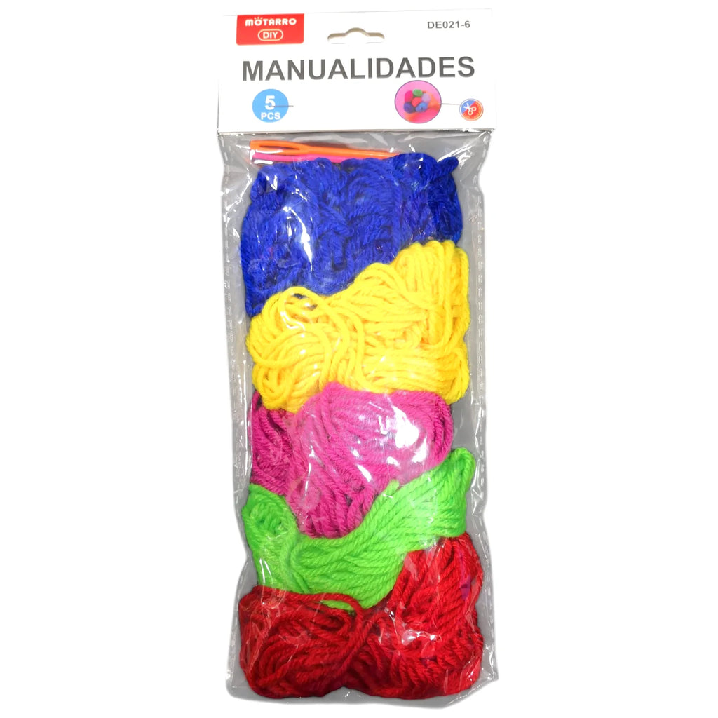 El Set de Lanas Motarro incluye todo lo necesario para iniciarse en el mundo del tejido y las manualidades escolares. Contiene 5 ovillos de lana en los colores más vibrantes —rojo, azul, amarillo, verde y fucsia— junto con 2 agujas plásticas, seguras y fáciles de manipular, perfectas para niños y principiantes.
