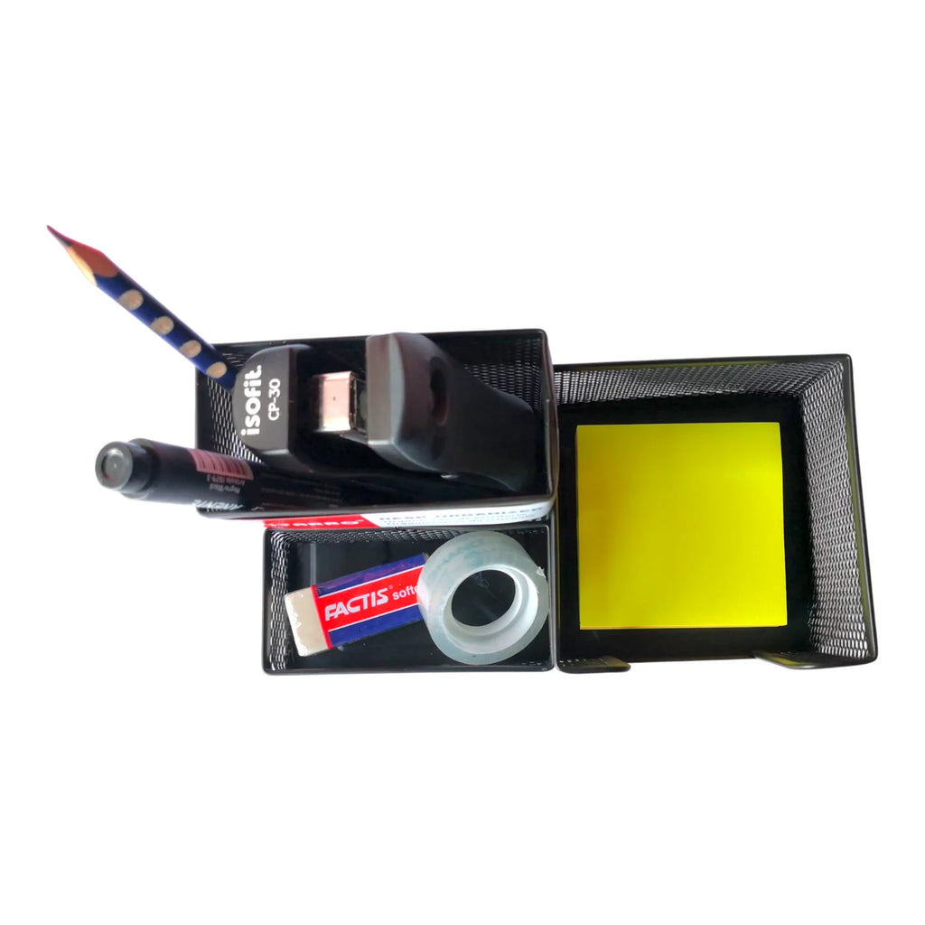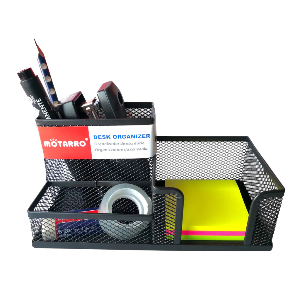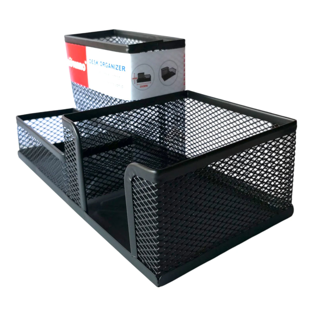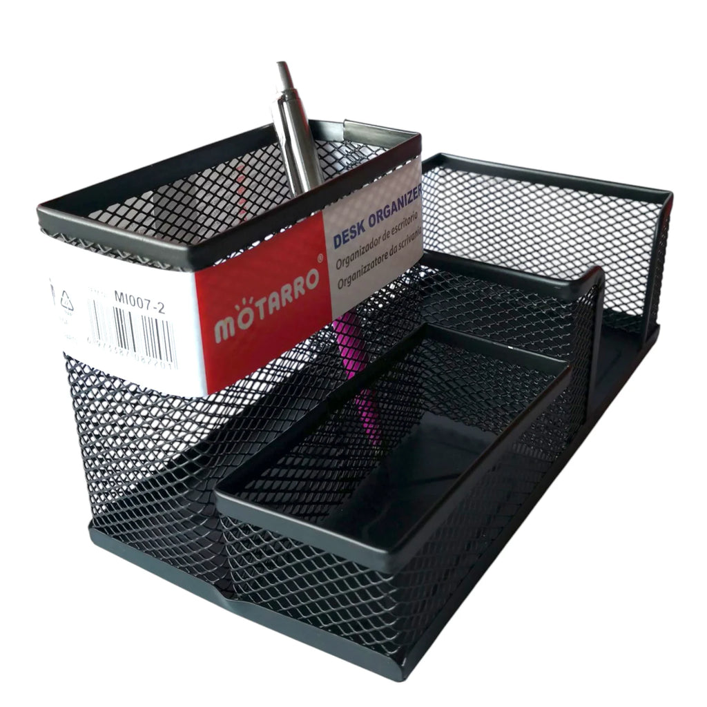 El organizador de escritorio metálico de 3 compartimientos es la solución perfecta para mantener tu espacio de trabajo siempre ordenado y funcional. Fabricado en una rejilla metálica resistente, ofrece gran durabilidad y un diseño moderno que se adapta a oficinas, escritorios escolares o espacios de estudio en casa. Sus compartimientos permiten clasificar lápices, bolígrafos, marcadores, clips, notas adhesivas y pequeños accesorios, facilitando el acceso rápido a todo lo que necesitas. Compacto y elegante, este organizador no solo ahorra espacio, sino que también aporta un toque profesional a tu escritorio.