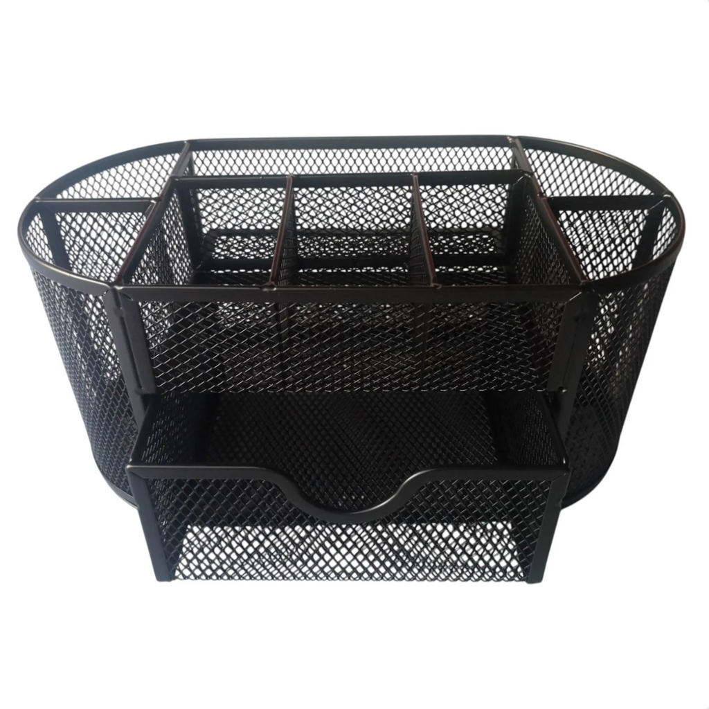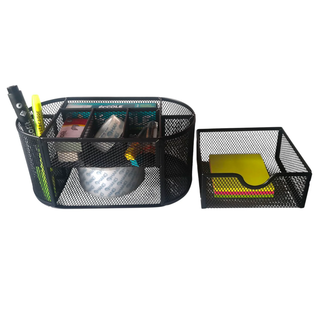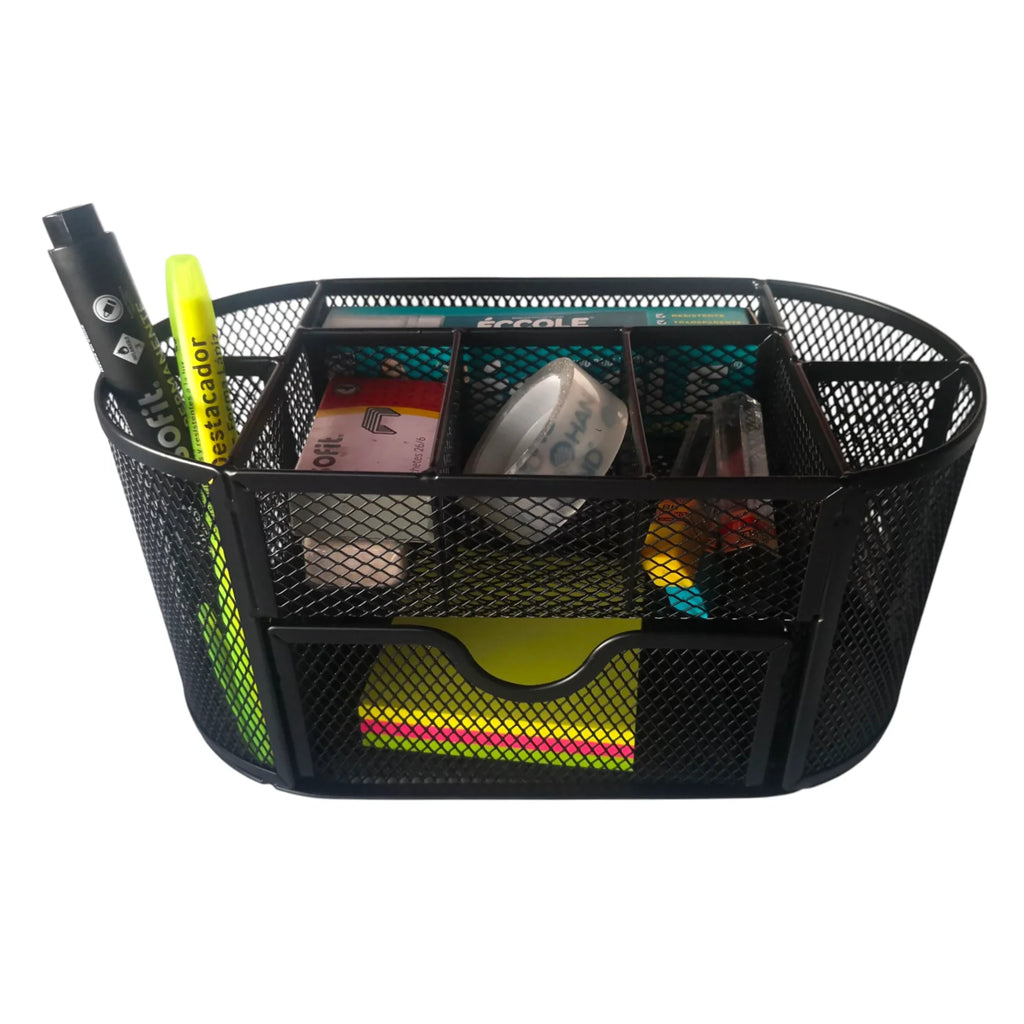 El organizador de escritorio metálico de 9 compartimientos es la solución perfecta para mantener tu espacio de trabajo siempre ordenado y funcional. Fabricado en una rejilla metálica resistente, ofrece gran durabilidad y un diseño moderno que se adapta a oficinas, escritorios escolares o espacios de estudio en casa. Sus compartimientos permiten clasificar lápices, bolígrafos, marcadores, clips, notas adhesivas y pequeños accesorios, facilitando el acceso rápido a todo lo que necesitas. Compacto y elegante, este organizador no solo ahorra espacio, sino que también aporta un toque profesional a tu escritorio.