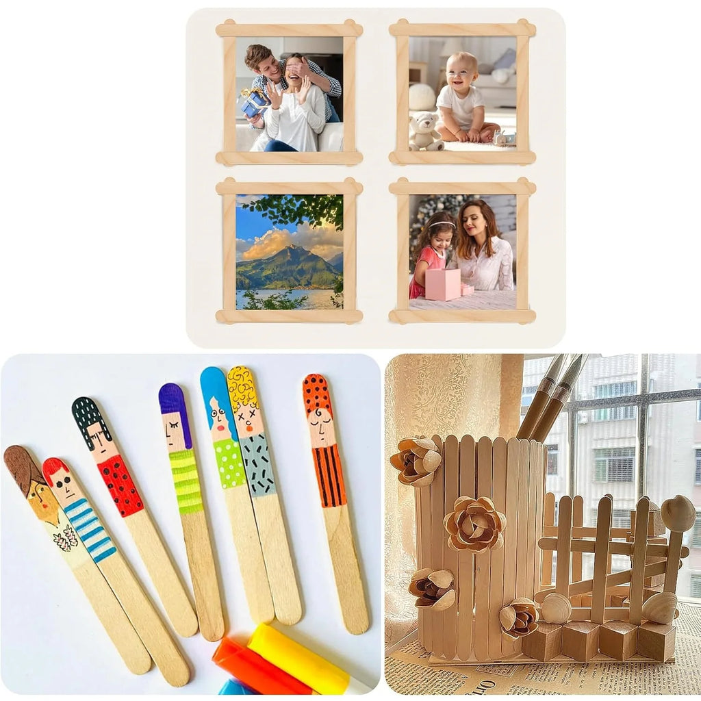Pack de 50 palos de helado delgados de madera natural, perfectos para proyectos escolares, manualidades creativas, decoración y uso en repostería. Su acabado liso y bordes redondeados los hace seguros y fáciles de manejar, incluso para niños. Versátiles y ecológicos, son una opción ideal para crear figuras, maquetas, soportes o etiquetas artesanales.