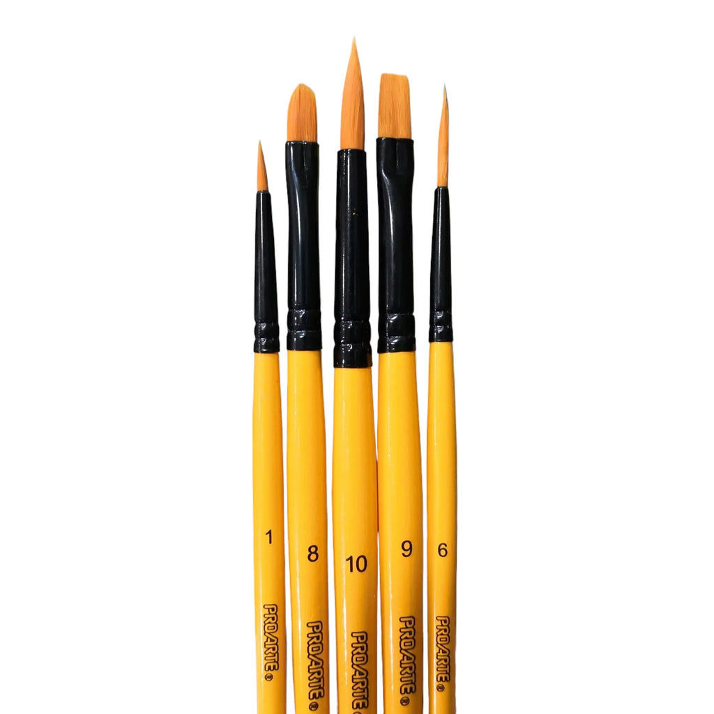 El set de 5 pinceles Proarte para acrílico está diseñado para ofrecer versatilidad y rendimiento en todo tipo de proyectos artísticos. Incluye una selección de pinceles con diferentes formas y tamaños, ideales para lograr desde trazos finos y detalles delicados hasta aplicaciones amplias y cubrimientos intensos con pintura acrílica.