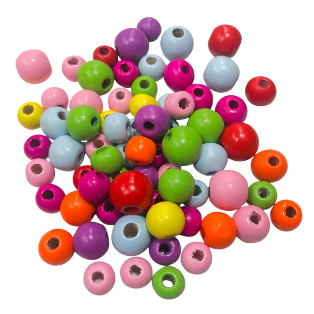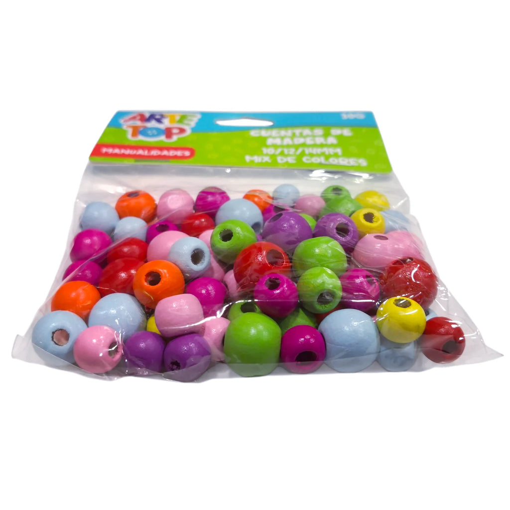 El set de cuentas de madera mix colores Artetop es perfecto para trabajos de manualidades, artesanía escolar, bisutería y decoración. Incluye cuentas de 3 tamaños surtidos: 10 mm, 12 mm y 14 mm, todas fabricadas en madera liviana y resistente, con un acabado suave y colores vivos que combinan con cualquier creación.