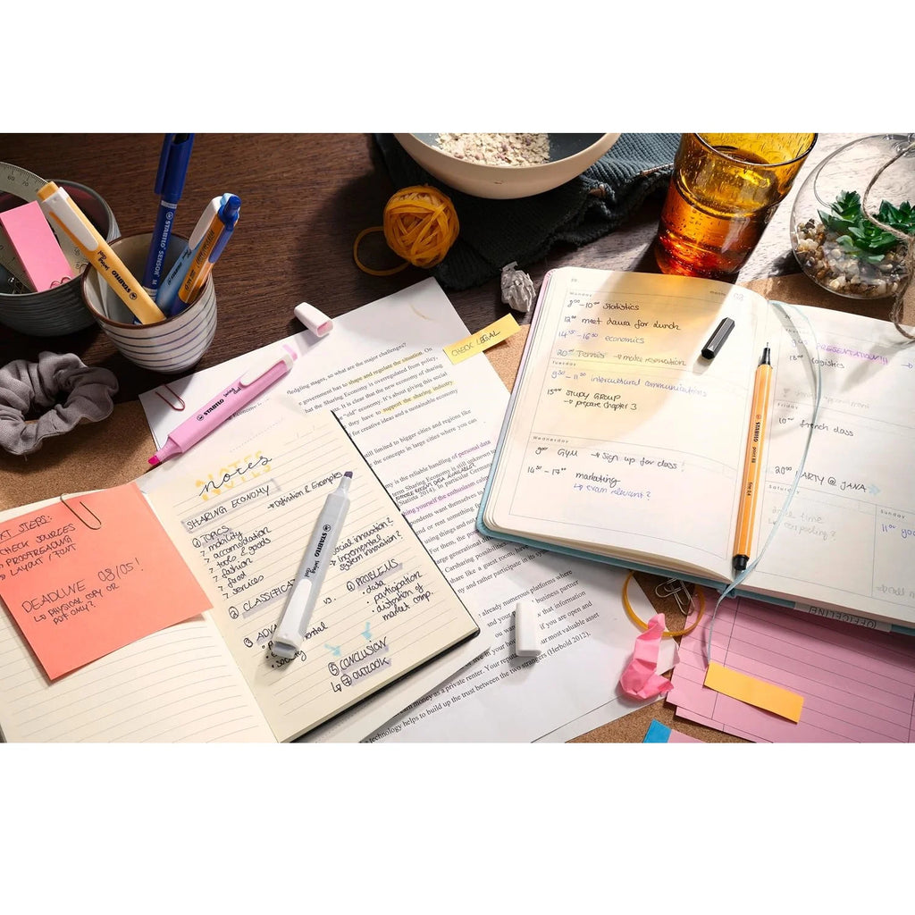 El Stabilo Swing Cool Pastel 6 Colores es un set de destacadores Stabilo en tonos suaves, ideal para quienes buscan resaltar con estilo sin cansar la vista. Su diseño delgado y portátil incluye clip para llevar en bolsillos o estuches. Cada destacador Stabilo Swing Cool tiene punta biselada de 1 a 4 mm, perfecta para subrayar o escribir con precisión. Su tinta es de larga duración y no se seca rápidamente, lo que lo convierte en la opción preferida para estudiantes, oficina y amantes del bullet journal.